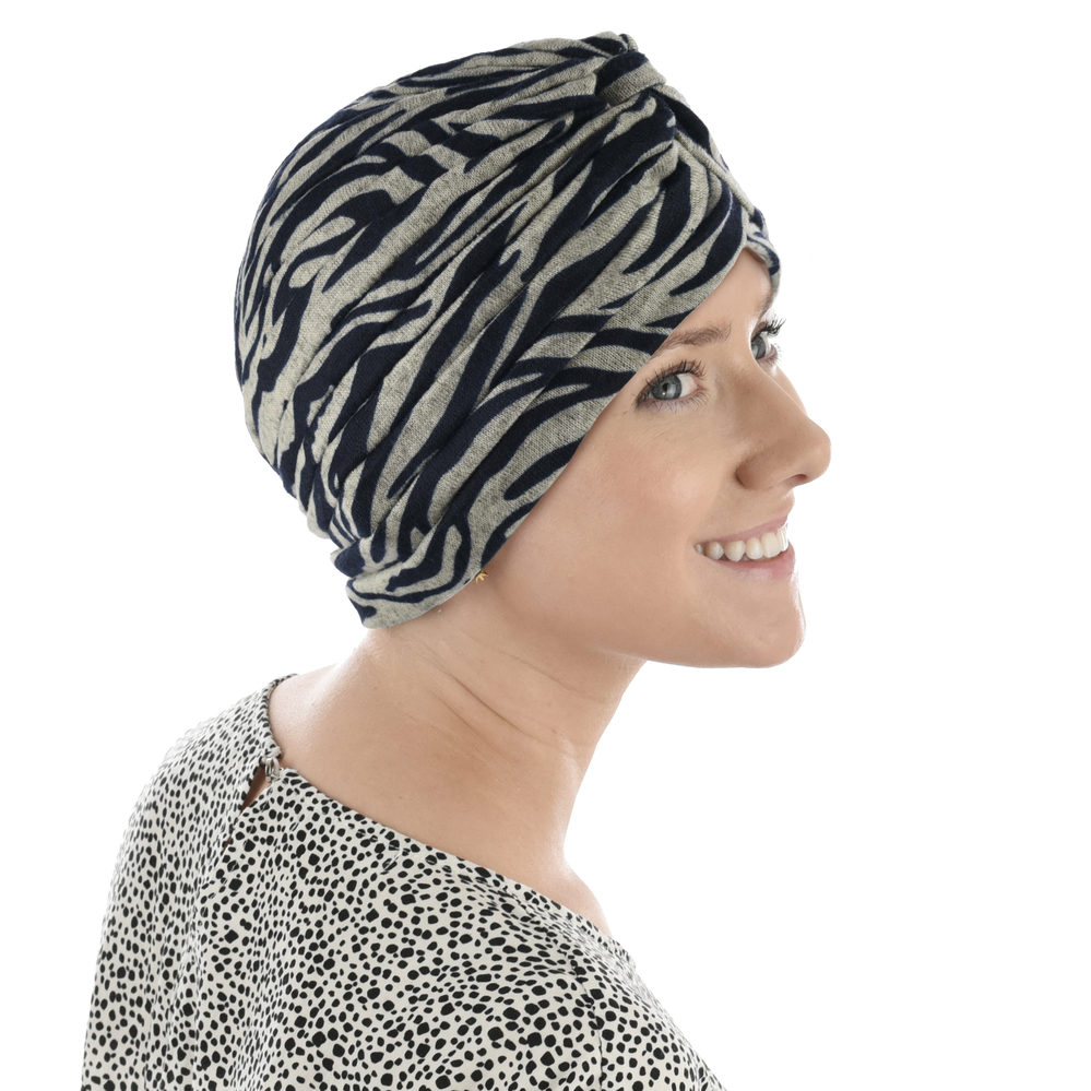The Soft Animal Print Pleated Turban is well structured with pleats all over it to give the hat extra body to create a fuller look. This is an ideal feature to increase your head volume if you have lost hair due to chemotherapy treatments or alopecia.