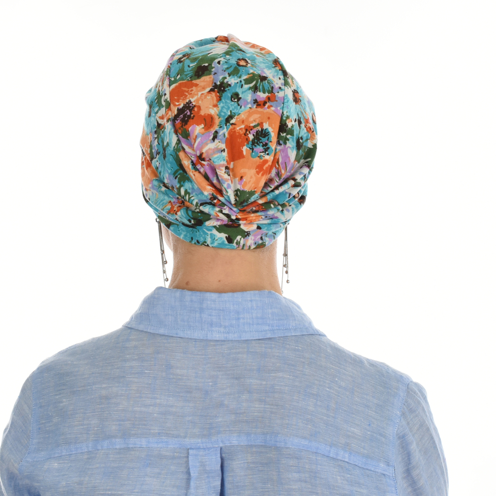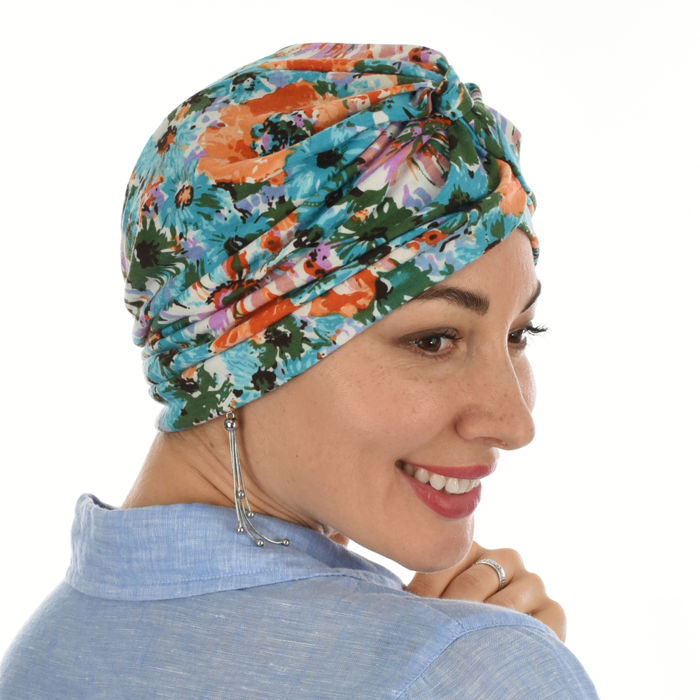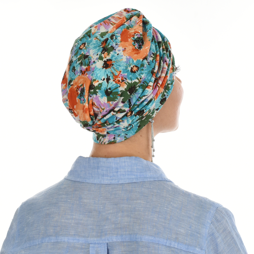 The Soft Floral Print Turban Hat is a timeless headwear piece with beautiful floral print. Perfect for masking the side effects of chemo, cancer or hair loss, this fashionable turban style hat will ensure your head is covered and compliments any outfit.