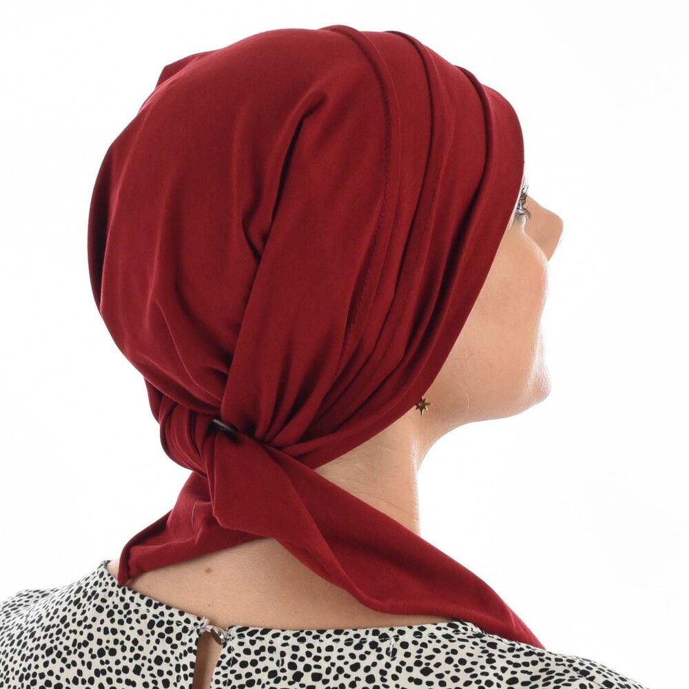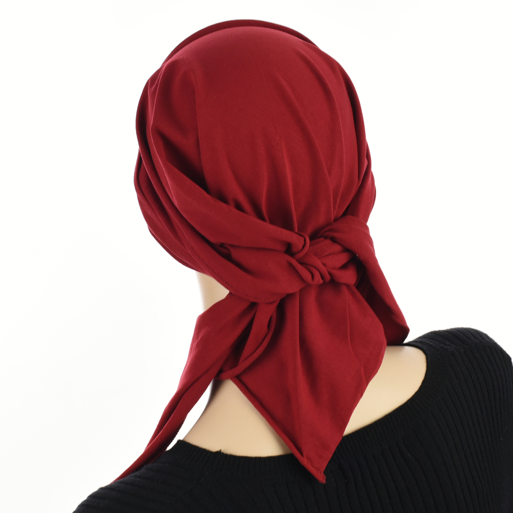 We recommend The Soft Pleated Triangle Scarf – Carly for all seasons and all head sizes.