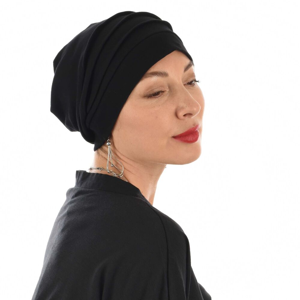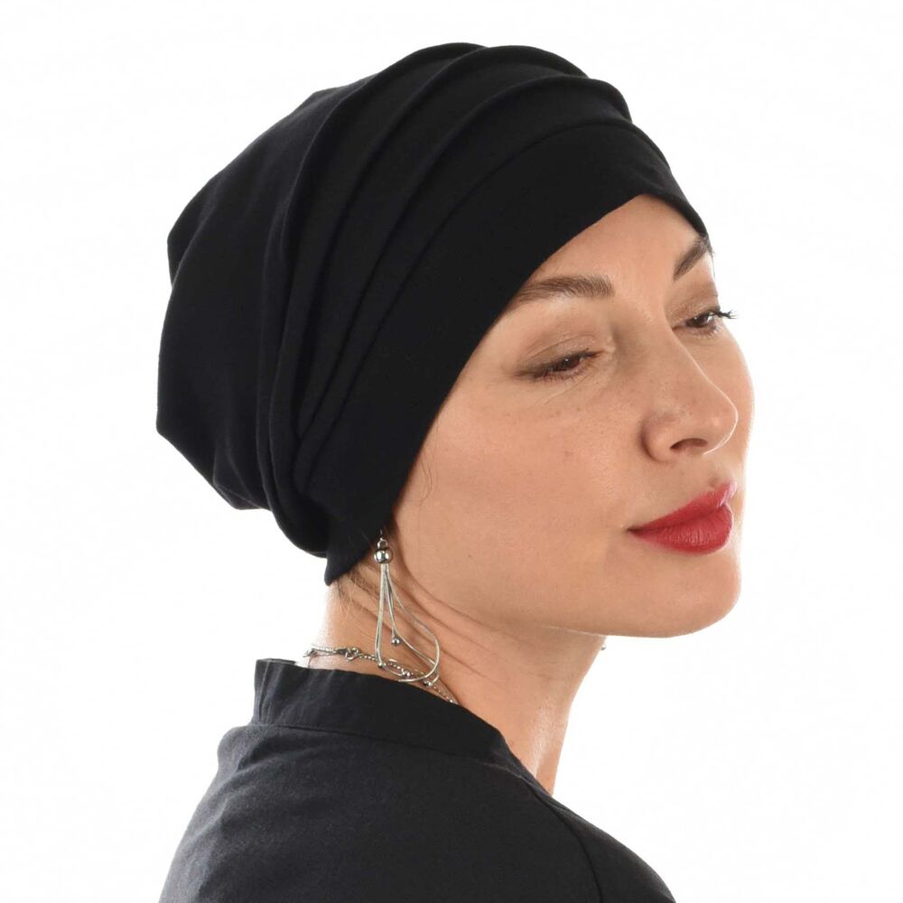 This is a headcover made of 100% cotton yarn jersey fabric. Please be reminded that this hat is unsuitable to be worn as a nightcap or worn in a hospital bed. Once it is overstretched, it won't come back to its original form. If the purpose of your order is to wear the cap in bed, please go to our Night Cap category. Please go to Care Instruction Page for more information on how to look after this cap.