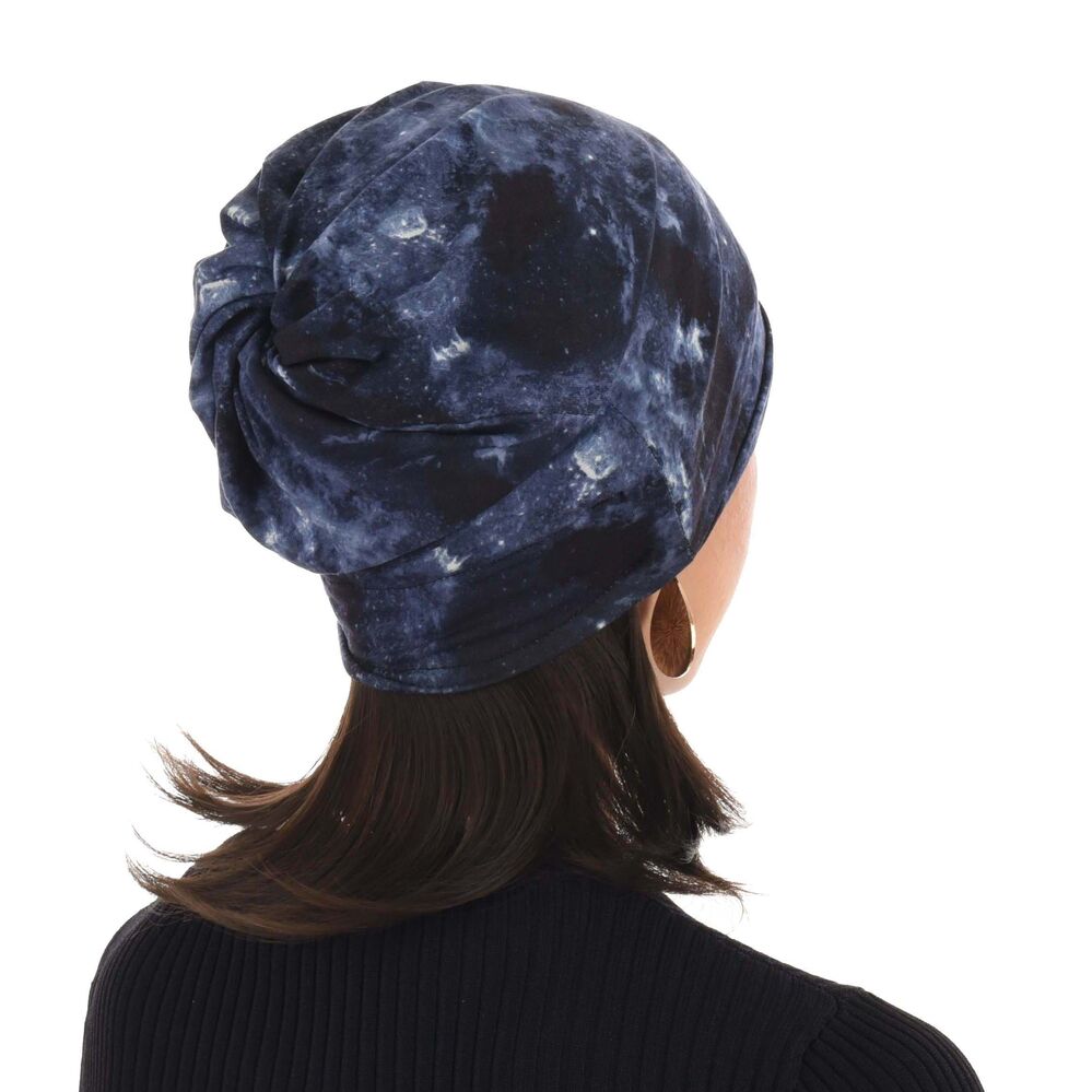 The hat body of Stella is made of soft rayon/viscose material. It is double layered with no irritating seams. It is size-friendly and breathable. The fabric is very good for women going through hair loss due to chemotherapy treatments or alopecia due to other medic