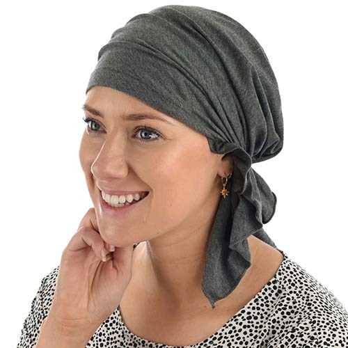 Stretch Chemo Pre-Tied Scarf Ella | Grey - Dark Grey