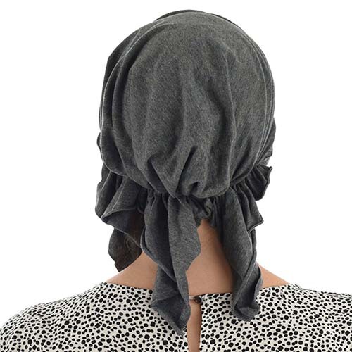 The Stretch Chemo Pre-Tied Scarf Ella features a pre-tied back. It is easy to slip on and requires no tying skills.