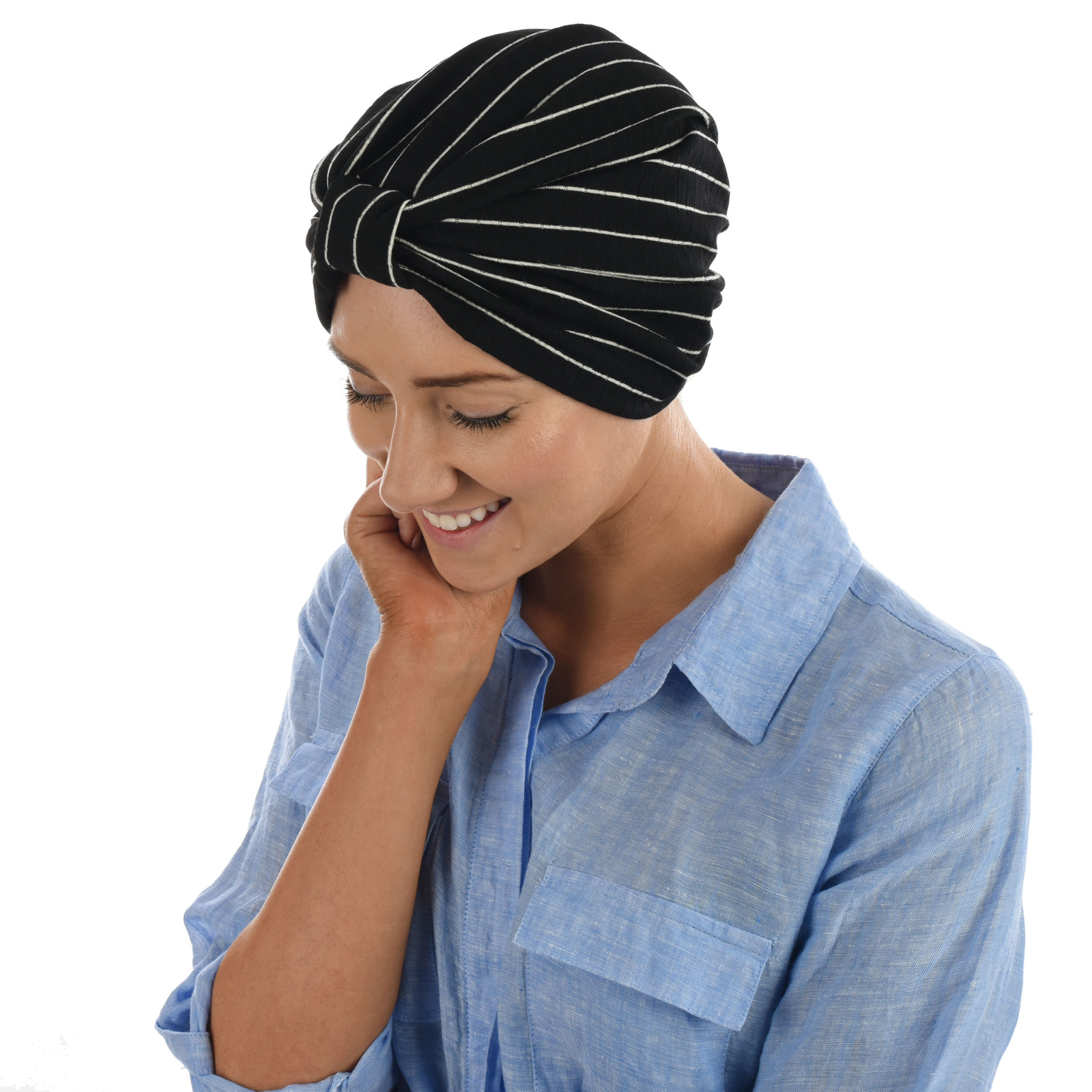 This timeless turban is suitable for all seasons and weather, and it can be easily transitioned into summer or winter with its cotton jersey moisture wicking fabric.