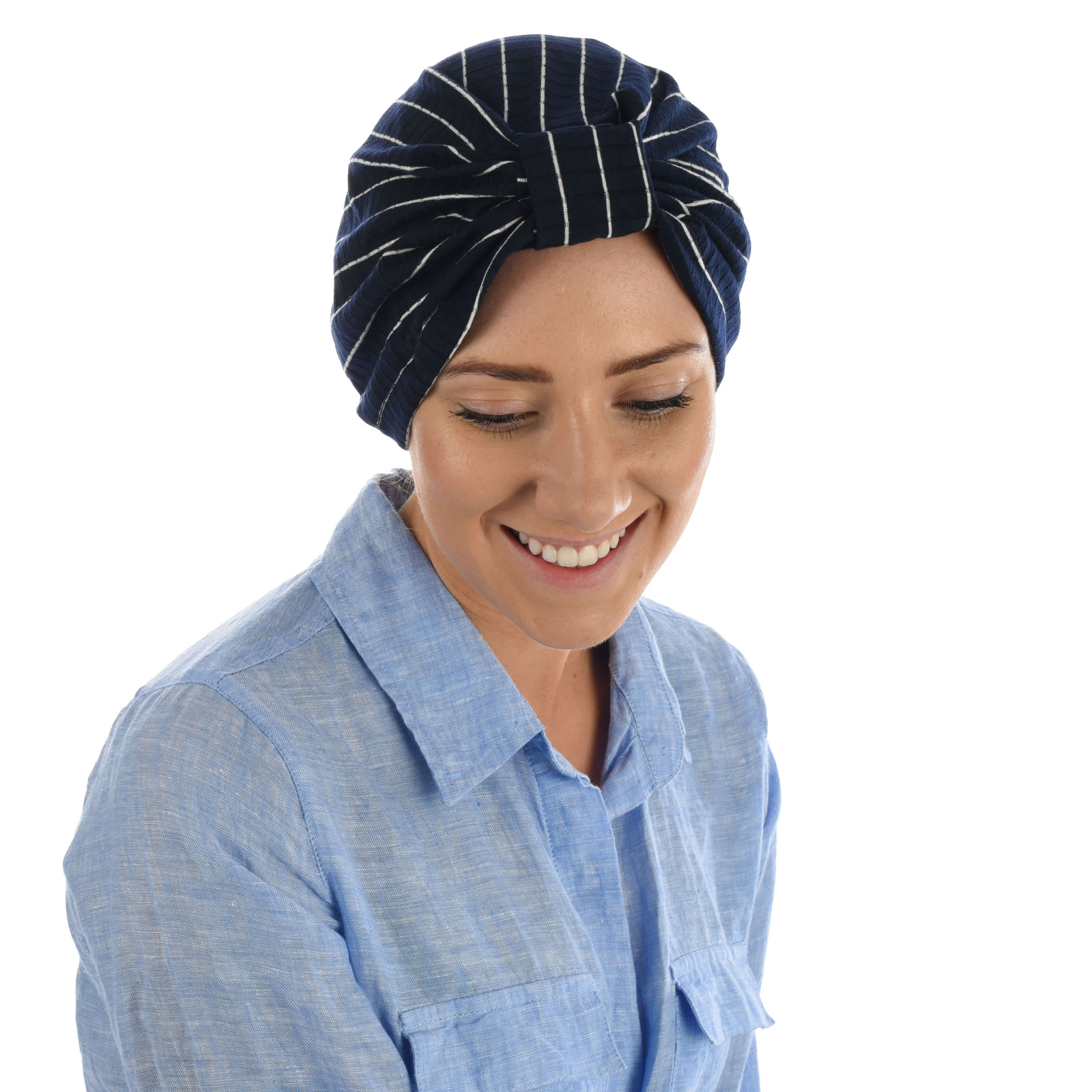 Striped Cotton Turban | Navy with White Stripes | S/M