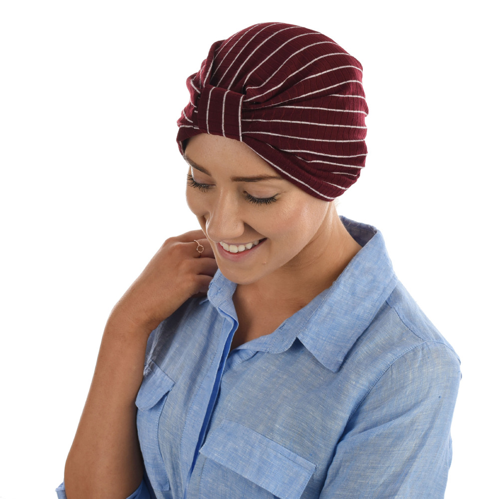 Striped Cotton Turban | Wine / Burgundy with White Stripes | L/XL