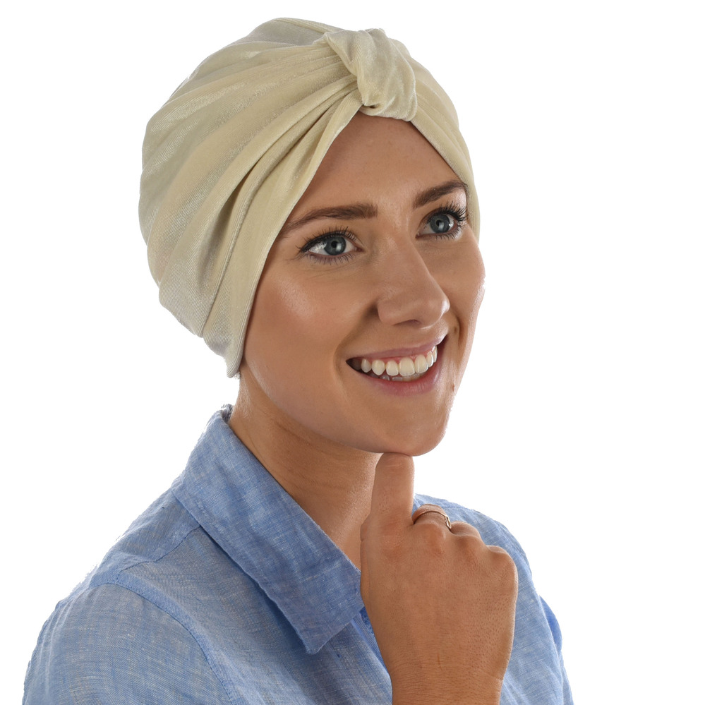For those who are experiencing hair loss due to cancer, chemotherapy, alopecia or other types of medical hair loss conditions, this timeless turban will make a practical head cover.