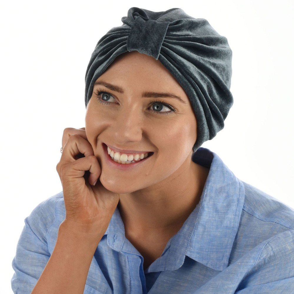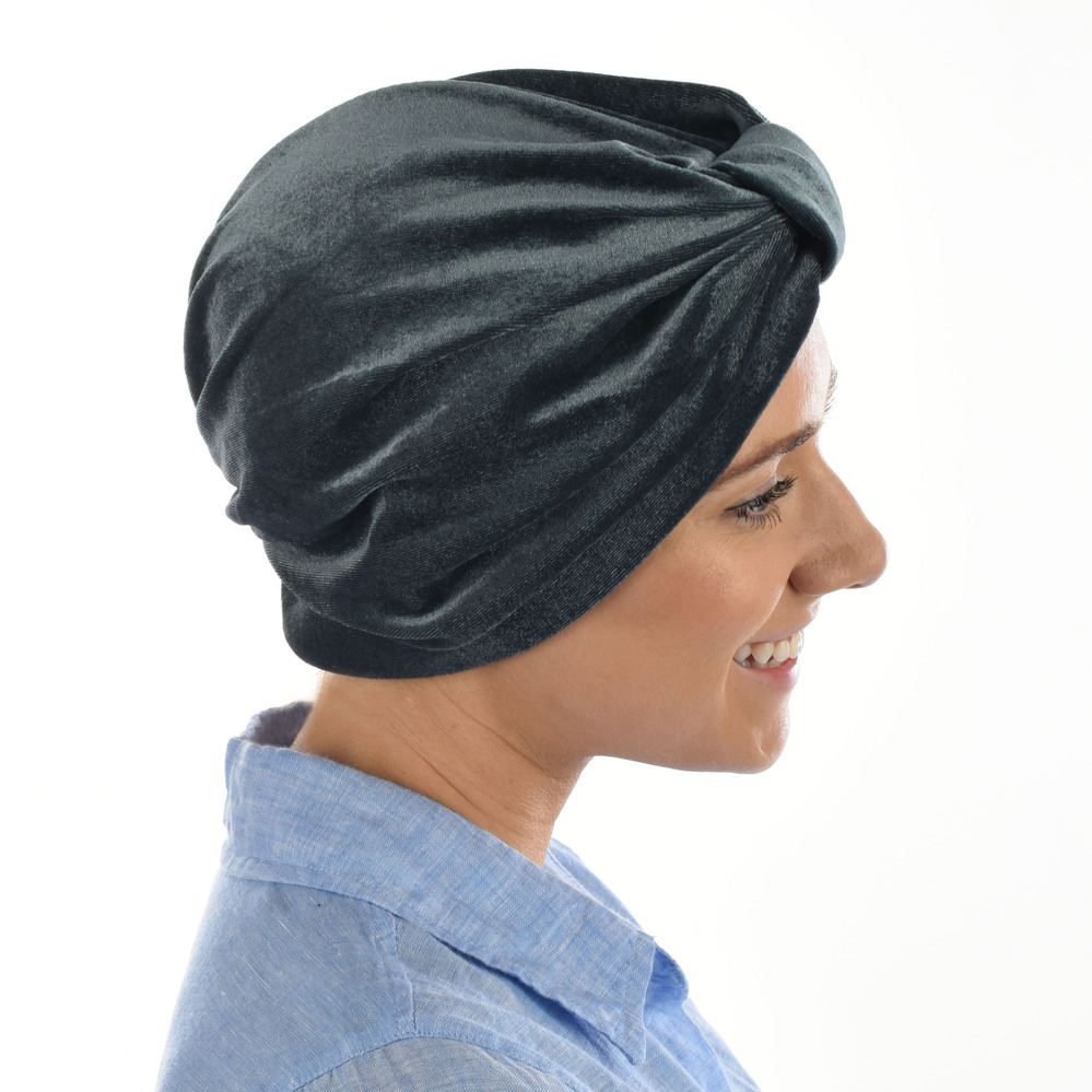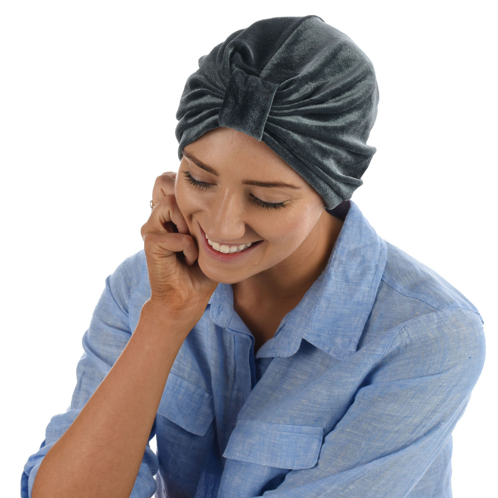 Tania Velvet Slouchy Turban | Grey - Dark Grey