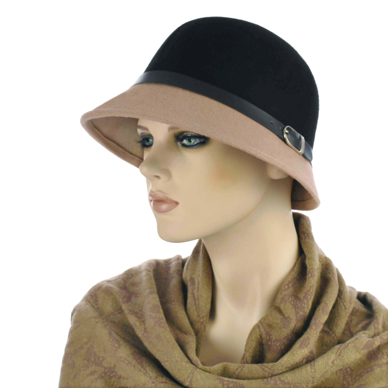 Teresa Wool Cloche Hat | Black Crown and Beige Brim | 56cm