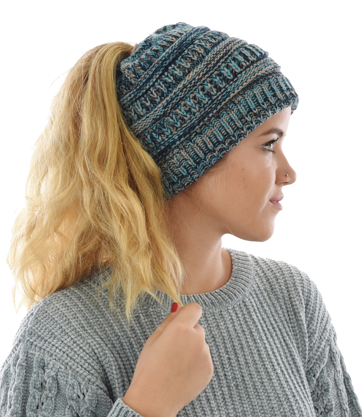 ...Click to Read MoreThree Toned Messy Bun Beanie
