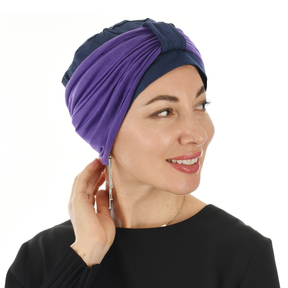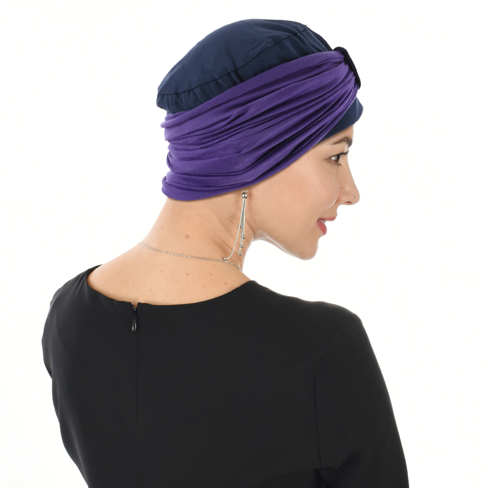 Turban with Removable Seamless Band – Kiara #11 Navy with Violet Deep Purple Band
