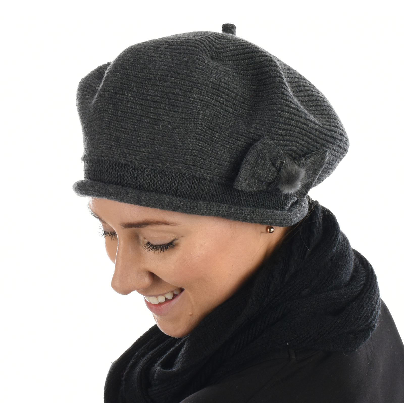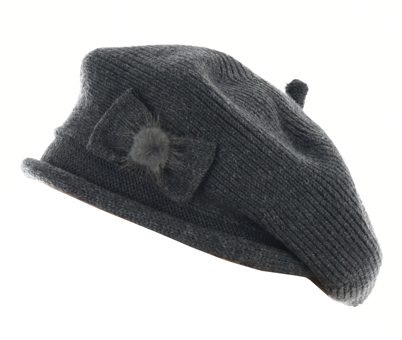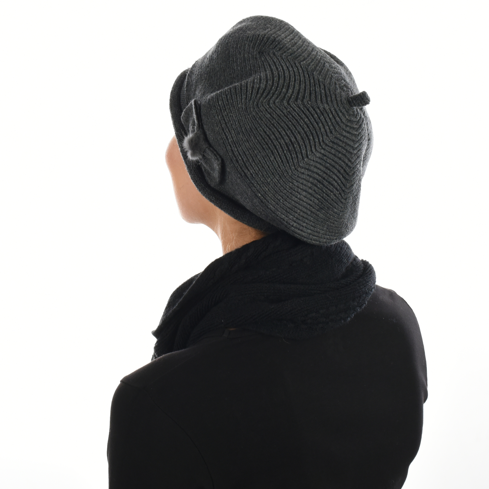 Wool Knit beret Bow on Side | Grey - Dark Grey