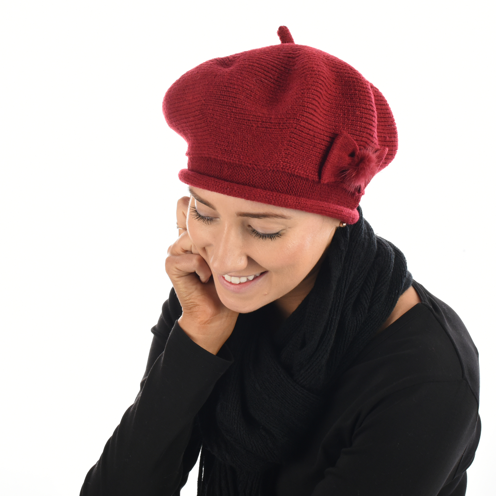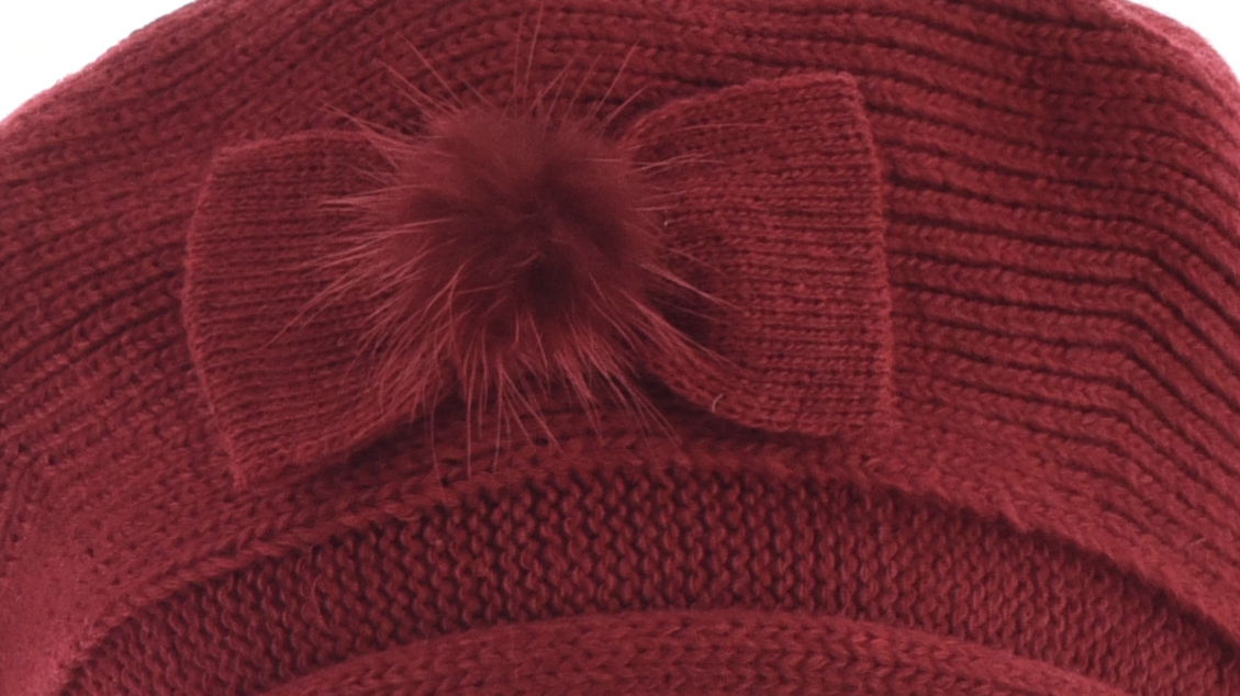 Wool Knit beret Bow on Side | Red - Burnt Red / Deep Red